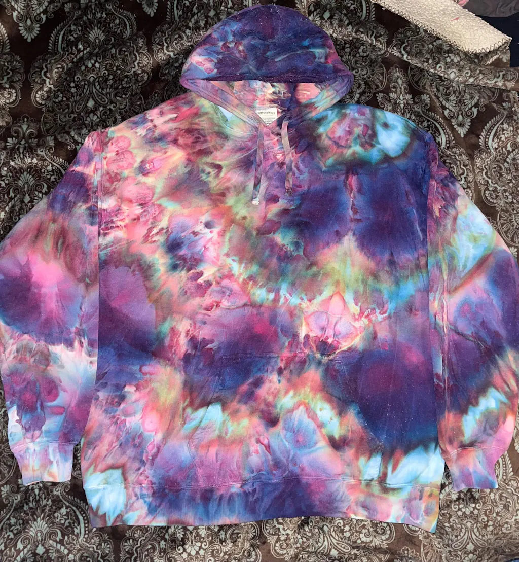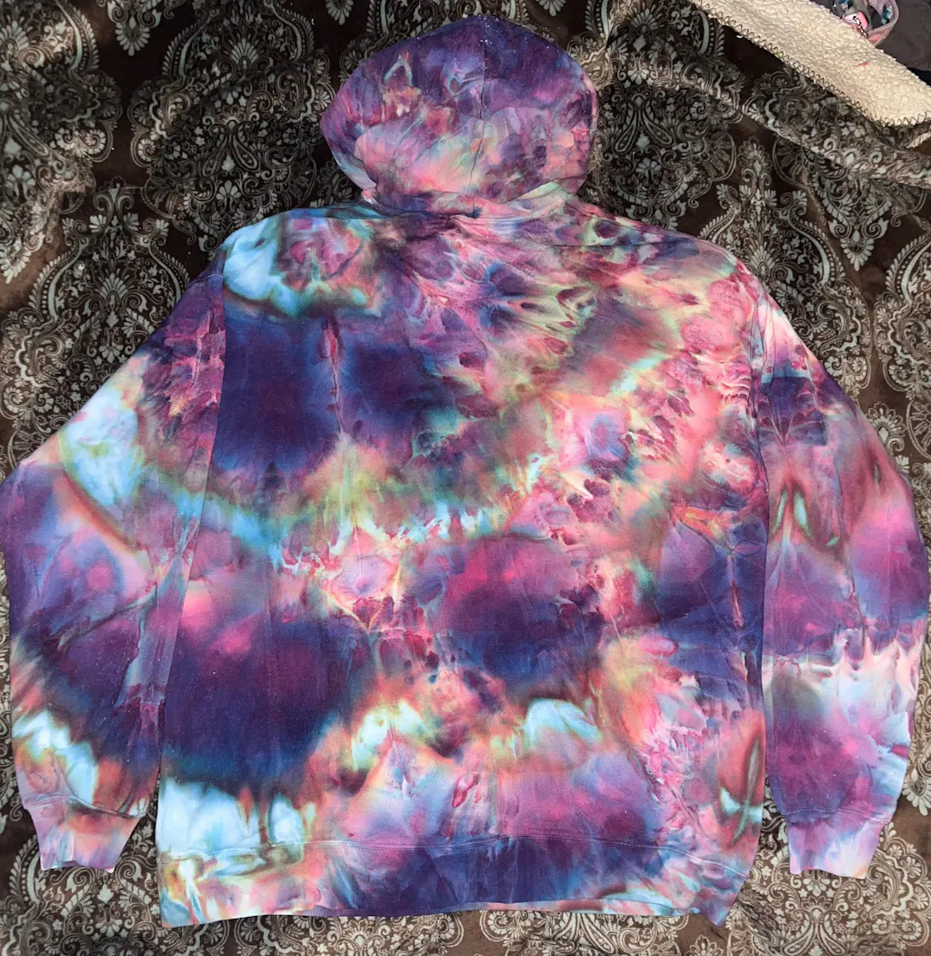I absolutely love Elysian! It has beautiful color splits, and blends well with so many other dye colors. I took a pink rayon dress, removed part of the color, and then ice dyed it using only Elysian. I think it turned out so pretty! It splits pink, blue, purple, magenta type colors, green, and so many more.